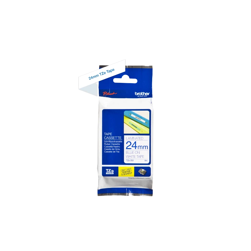 Ajoutez une touche de professionnalisme et de clarté à votre organisation avec le ruban laminé Brother TZe-253. Ce ruban de 24 mm de large et 8 mètres de long se distingue par son élégant contraste : un texte bleu vif sur un fond blanc pur. Cette combinaison offre une excellente lisibilité, idéale pour un large éventail d'applications où la clarté visuelle est essentielle.